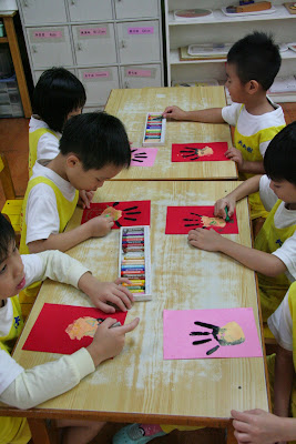 在孩子都認識了自己生日後,希望孩子更認識自己的成長過程,因此請家長們協助提供孩子小時候的物品及照片,當孩子陸陸續續帶來學校並進行簡單介紹時,發現孩子們對小時候的情形很感興趣,接著一周內接連拿到幾乎所有孩子小時候的物品,因此也讓接下來介紹孩子小時候使用的物品及孩子成長過程時有充足的資源,當孩子看到小baby時穿的娃娃衣、小襪子、小手套、小帽子,都不經驚嘆:怎麼那麼小,原來我們都從這麼小長大的!看到James的臍帶印章、胎毛筆,更能對照孩子們看完小時候的照片都有的疑問:為什麼不管男生女生小時候都有小光頭的時候~ Belle媽媽精心製作成長小書中有著Belle剃頭收涎儀式的照片,正好更加深孩子認識傳統古禮儀式;James媽媽準備的磨泥器,讓所有的孩子有機會回到一歲以前,感受吃副食品的滋味,在自己動手操作下品嘗,似乎也變得更美味;Ruby媽媽準備的背巾,讓Ruby重新感受坐在背巾裡的感覺(其實老師也希望讓每個人嘗試,可是真的~太重啦!)非常感謝所有家長們熱情的協助,讓活動進行的更加豐富完整。