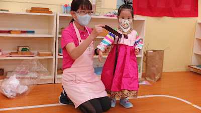 亞洲除了台灣之外,還有哪些國家呢?孩子們討論著,想要來介紹台灣的鄰居,於是討論後決定分組回家找找資料,再來學校跟大家做介紹,帶著大家一起認識了台灣、日本、韓國、泰國與俄羅斯,每天早上與吃飯時間,練習用不同國家的語言和老師同學打招呼。在台灣我們認識了童玩,做了毽子與傳聲筒;在泰國我們做了彩繪的金色指甲,跳了泰國舞蹈;韓國認識了童玩,折了畫片以及進行投壺大賽;在日本則是體驗了相撲比賽,還製作了童玩紙相撲,認識了神社文化後許了願,製作御守保平安。在語文區工作中認識了各國打招呼的方式、數學區認識了泰國五神獸並且排了序列、文化區中充滿每一個國家的文化特色與特殊動物,亞洲嵌圖板更帶我們認識國旗與國家地標、感官區利用粉紅塔與棕色梯的堆疊,小心翼翼堆出101的模樣、日常區夾夾壽司與月見團子,剪工、縫工、編織工中呈現各國服裝特色與飲食。操作工作的途中,孩子們都可以細細欣賞亞洲各個國家文化風情。亞洲美食饗宴,小小班的俄羅斯馬鈴薯沙拉、小班的泰國豬肉煎餅、中班的韓國雜菜煎餅、大班的台灣赤肉羹,以及下午點心日本銅鑼燒,一起品味亞洲各個國家美食!