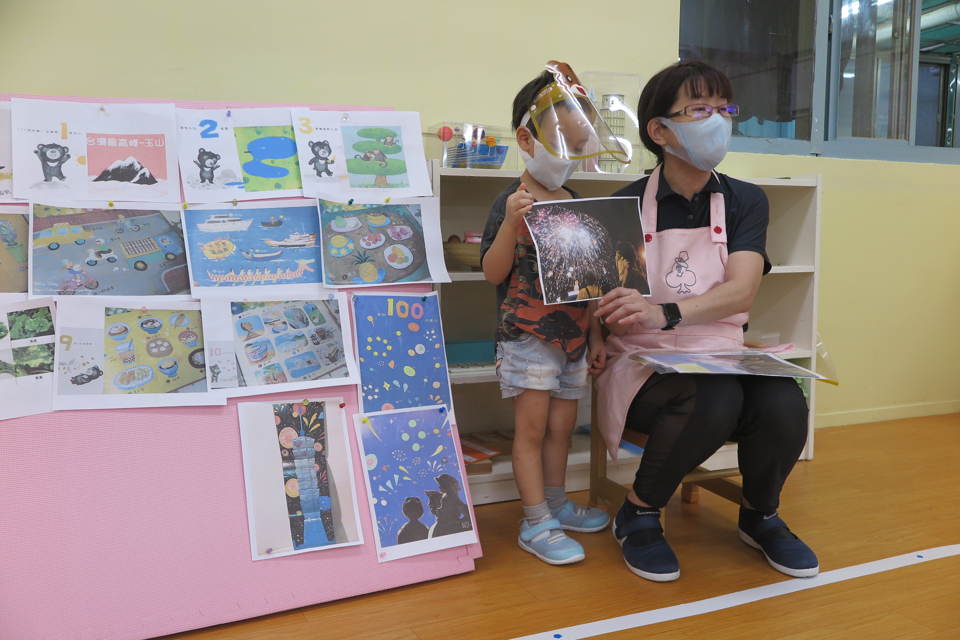 在工作中,透過台灣縣市地圖讓孩子們做文字的對應外,縫工、撕貼以及地形模型等等,將台灣的地形與文化特色融入工作中,讓孩子們在操作的過程更加認識台灣,文化區中的六大洲磁鐵板讓我們知道亞洲的位置。