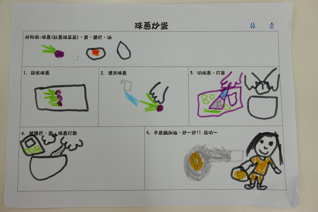孩子們種植了蒜苗、珠蔥,每天觀察著菜苗的變化,期盼他們健康長大,等到可以採收的時候,一起製作了珠蔥炒蛋,並將步驟紀錄下來,有孩子也回家跟爸爸媽媽一起做一起品嘗,自己種的最好吃了!